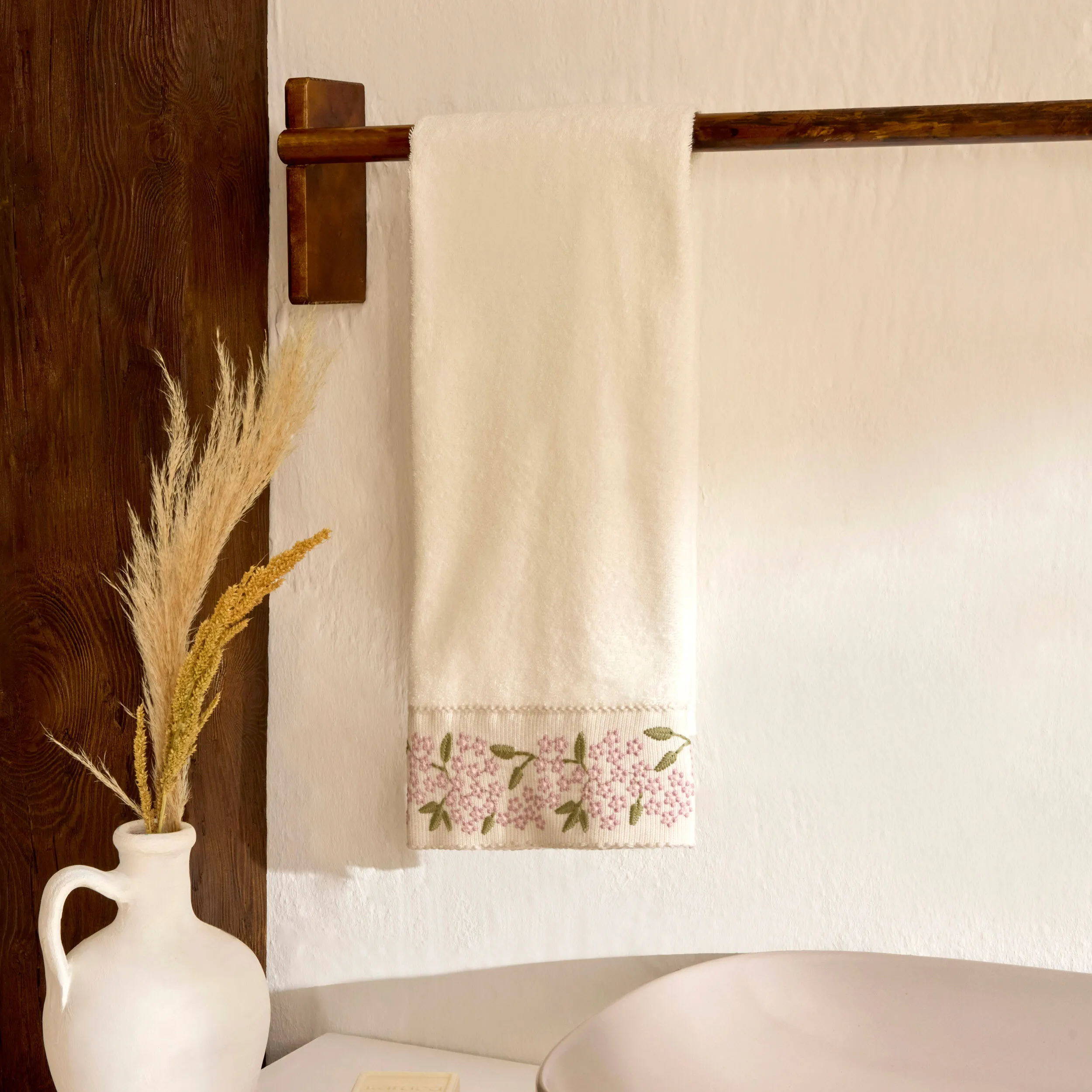 Karaca Home Artisan Arke %100 Pamuk Nakışlı El Havlusu Ekru 50x90 cm